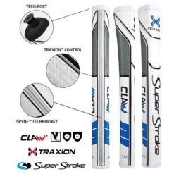 SuperStroke White And Silver Embossed Traxion Tour Fatso 5.0 Golf Putter Grip| American Golf