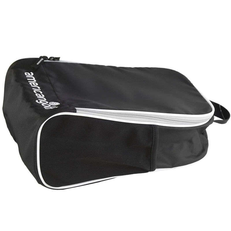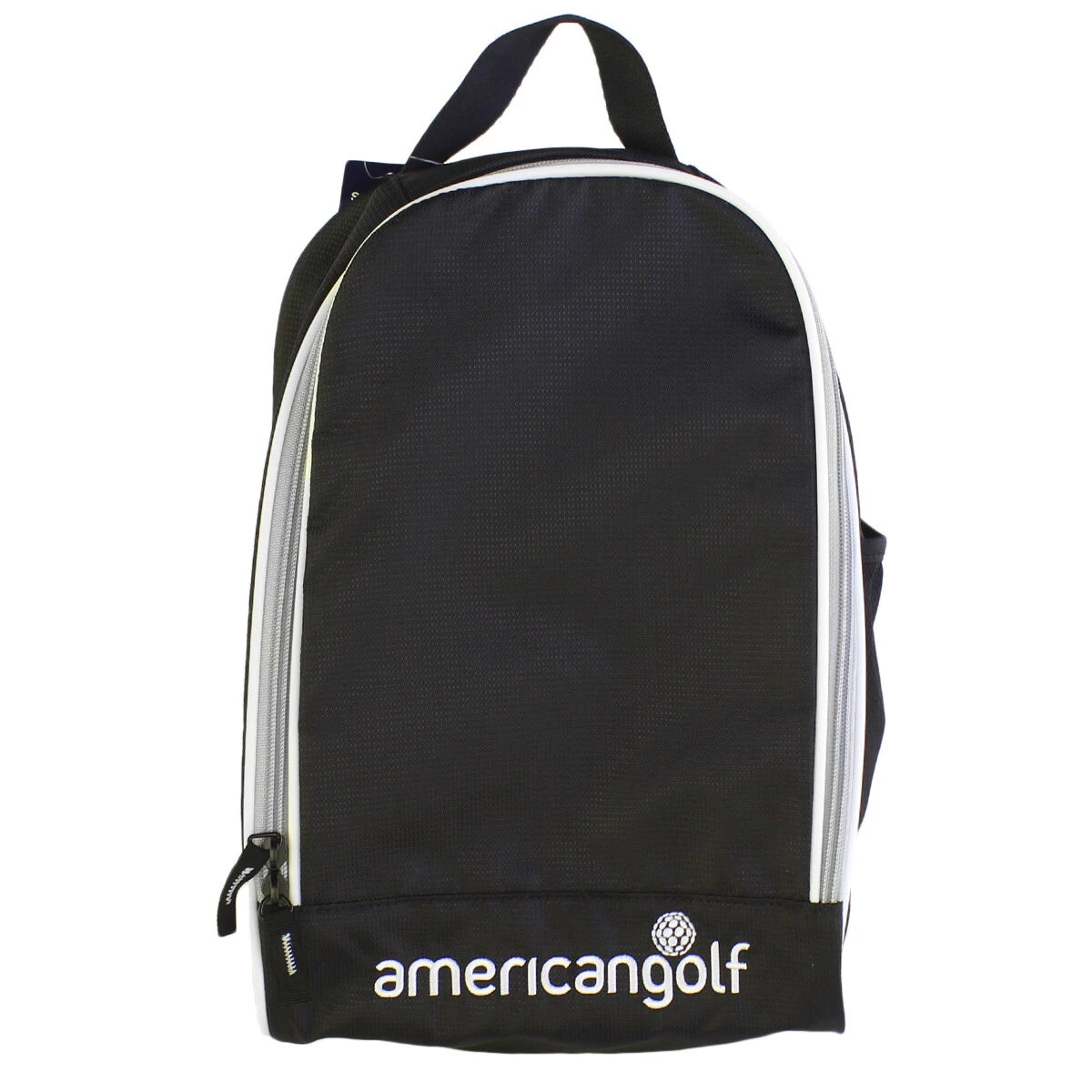 This essential bag from American Golf offers optimum shoe protection. The design features dual zips for easy access, and has a large main compartment which provides optimum storage for your shoes. Constructed with a highly durable dobby nylon material, with robust lift assist handle on the top for easy transportation. Other features include breathable side vents to provide increased airflow, this prevent the build up of unwanted odour and to keep you shoes moisture free. Finer details include American Golf brand logo embroidery, and contrast colour piping around the edges.