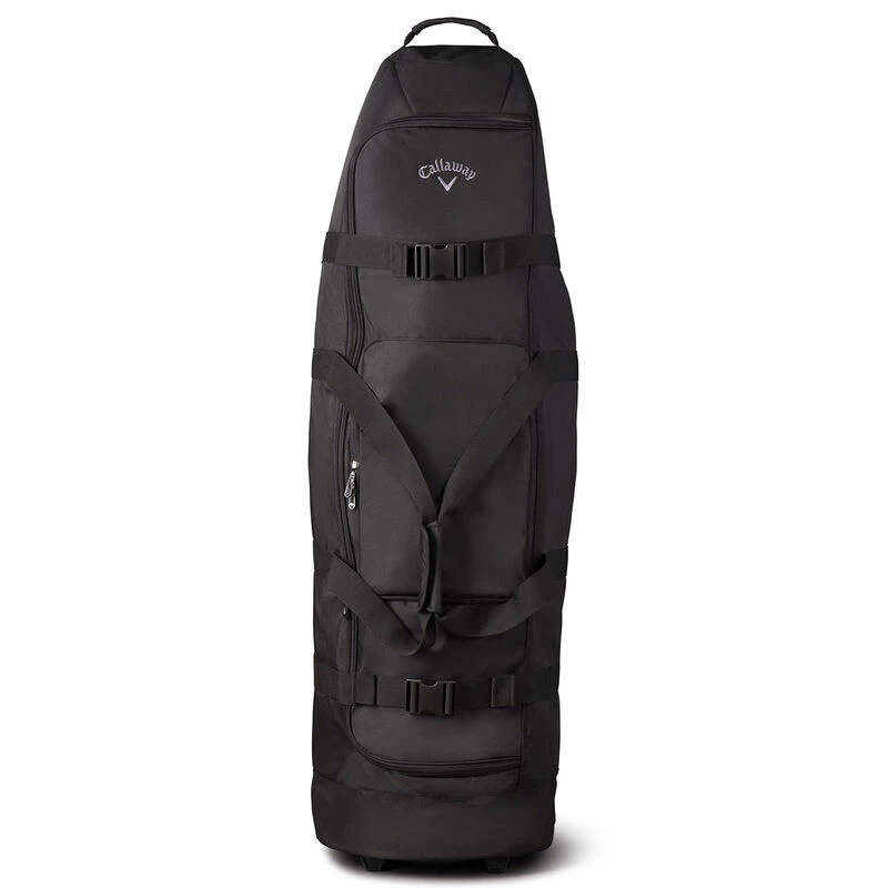 For the overnight getaway or golf holiday choose the Callaway Golf Clubhouse Travel Cover. The travel cover will ensure your clubs are ready to easily transport with a neoprene comfort grip handle and reinforced wheelbase. For easy access to your clubs, the cover features exterior quick-release tie-downs and has an internal shoe pocket. Finer details include a business card identification holder to allow you to identify your bag after arriving at your destination. Suitable for both cart and stand bags.