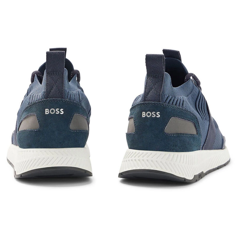 Premium trainers crafted from a structured-knit upper for breathable comfort with a BOSS branded tongue, side panel, and back tab to match. Made with REPREVE® fibres, a leading branded fibre made from recycled materials including PET bottles. Complete with a modern rubber outsole for traction, with BOSS details to assure a sporty look.
