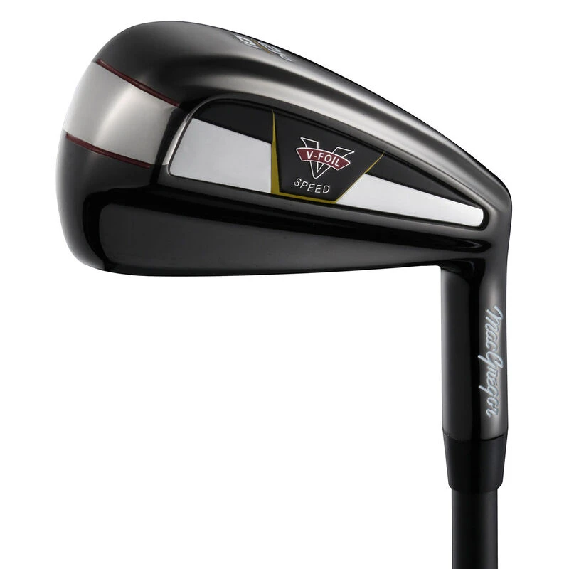 The V-Foil Speed driving iron provides hybrid-like performance with improved distance and accuracy. It has a hollow body construction made from high-strength stainless steel, and is engineered with a thin face to increase ball speed for added yards of easy distance. The iron has expanded perimeter weighting to achieve a high-MOI, for more forgiveness but with the control and workability of an iron. It is fitted with a performance-matched graphite shaft and a soft compound MacGregor grip.