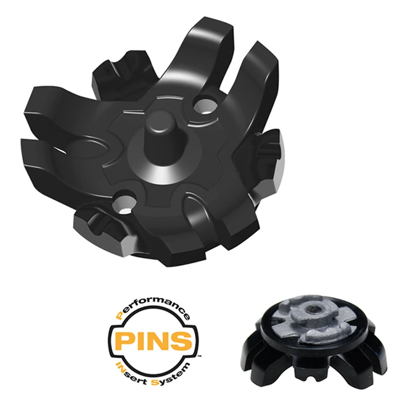 The Masters Pro PINS Spikes offer an unmatched combination of lightweight metal and plastic to ensure you have a full grip in all-weather conditions. Each cleat is surrounded by 6 traction legs with 3 support pads to give the best grip and performance around the golf course. The Pro PINS Spikes comes as a set to fit the performance PINS insert system.