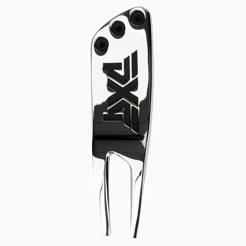 Modeled after the look and Precision Weighting Technology of PXG irons, this double-prong divot tool is as slick as it is handy. Finished in chrome with a recessed PXG logo. Size: 1.0 in x 3.0 in
