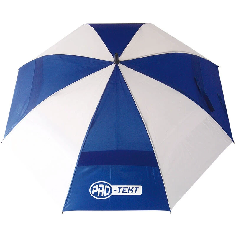 This wind-resistant golf umbrella has a dual-canopy design to allow wind to pass through. It has a strong lightweight fibreglass frame and shaft and has an ergonomic handle to ensure top performance. For added convenience, the umbrella has an automatic open function and comes with a protective sleeve. The umbrella is highlighted with a Pro-Tekt brand logo.