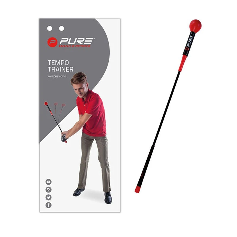 Improve your game of golf, by building on the fundamentals of the golf swing, with this tempo trainer from Pure 2 Improve. The counterweight on the trainer promotes a nice smooth swing and helps to build specific muscles used during the golf swing. This is perfect for warming up before your round, helping you to improve your tempo, rhythm and balance. Size: 40″” / 100cm.