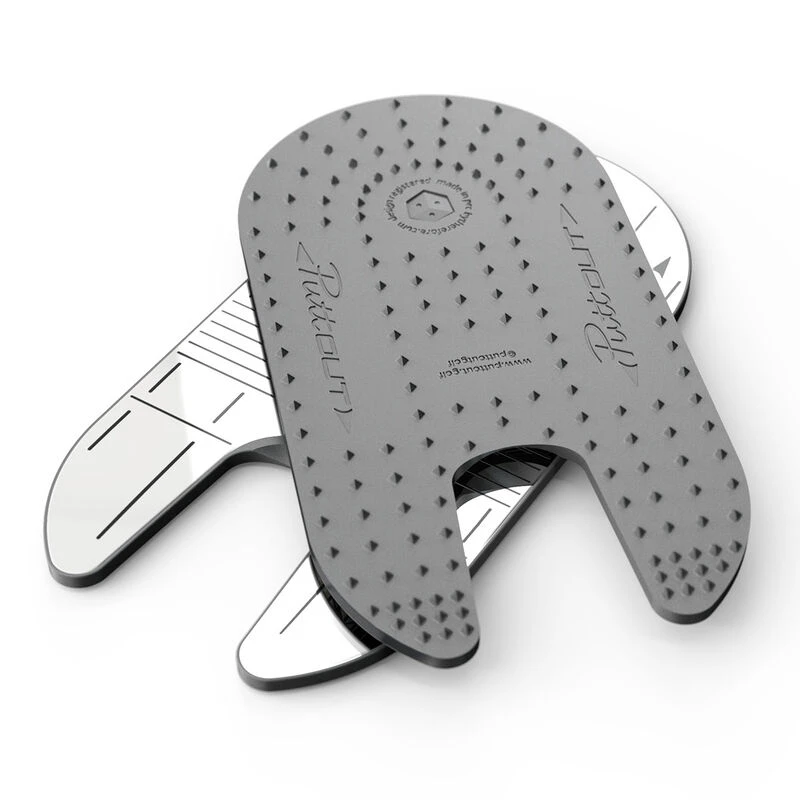 Practise your putting skills either at home or on the actual putting green, with this compact putting mirror from PuttOUT. This training aid is beneficial for first-time and professional golfers alike, allowing you to not only practice eye, shoulder and ball alignment but also to actively works on your stroke’s path. The mirror has been constructed with a polycarbonate mirror which features non-scratch surface alignment graphics and golf ball locator. This can be sat on spiked rubber base to hold the mirror in place while you putt. This mirror is designed to fit into your golf bag for use wherever you need it and comes with a protective bag for storage and transportation.