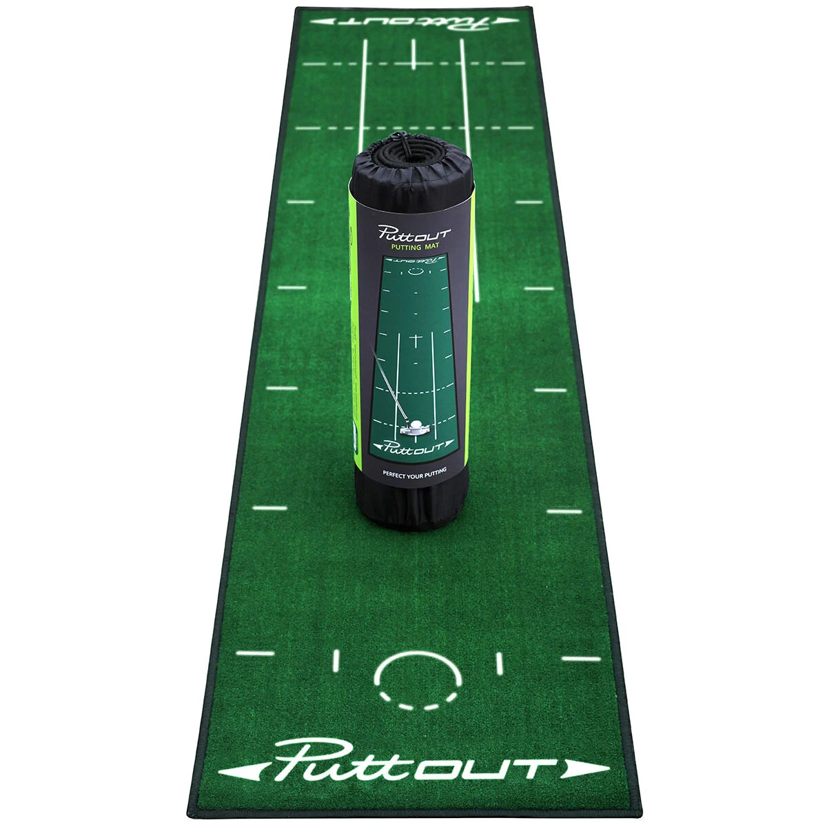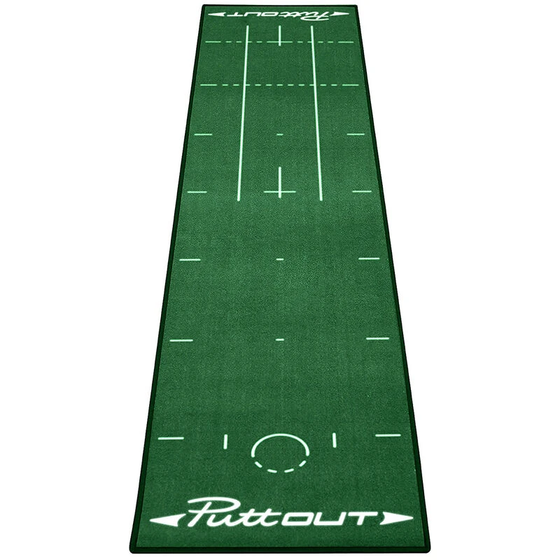 Practise makes perfect, with the highly durable PuttOUT Deluxe putting mat. This nylon mat with heavy duty rubber backing ensures you can practise your putting anytime and anywhere. The mat has a stimpmeter reading of 10, to replicate a medium to fast paced green, with alignment lines and foot markers from 6 foot out.