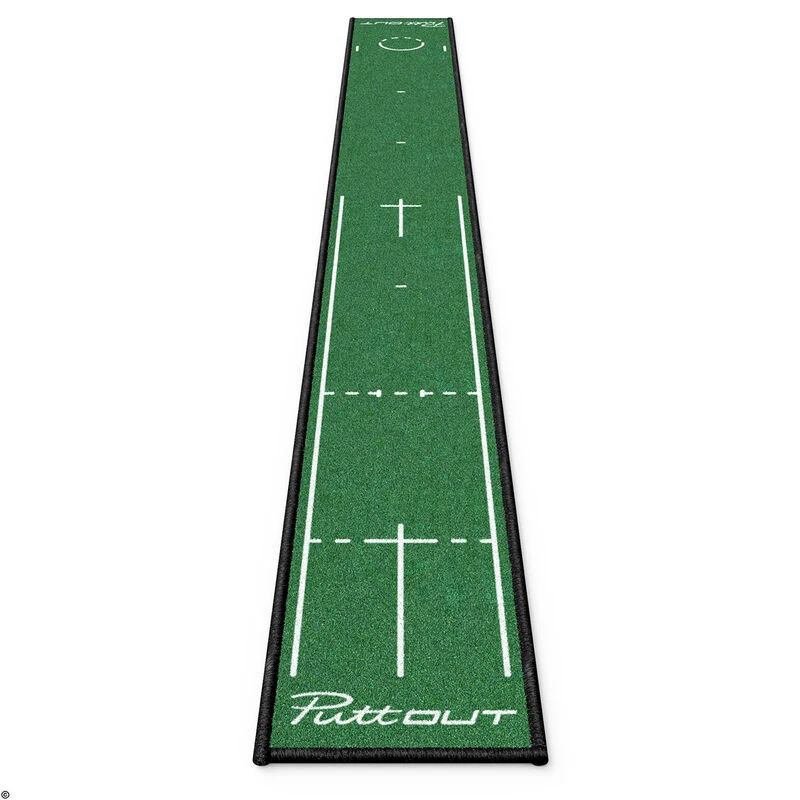 Practise makes perfect, with the highly durable and portable PuttOUT putting mat. This nylon mat with heavy-duty rubber backing ensures you can practice your putting anytime and anywhere. The mat has a stimpmeter reading of 10, to replicate a medium to fast-paced green, with alignment lines, markers, and target hole.