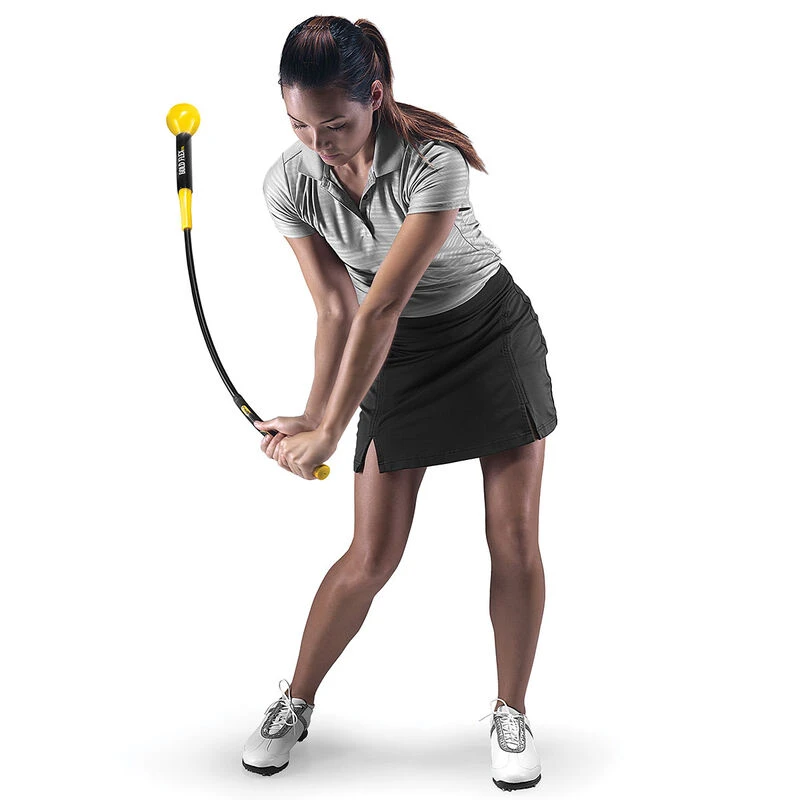 Smaller size for ladies and juniorsThis unique training device has been developed to train core golf muscles and to improve your golf swing tempo. It has a durable fibreglass shaft which teaches fundamentals of shaft lag. And a polyurethane head and head weight improve`s kinetic sequencing in the swing. The trainer has a golf grip which has guidelines for correct hand placement and has a shaft length which flattens the swing plane. As well as improving core muscles it is ideal for pre-round routines to get you ready for your first shot off the tee.