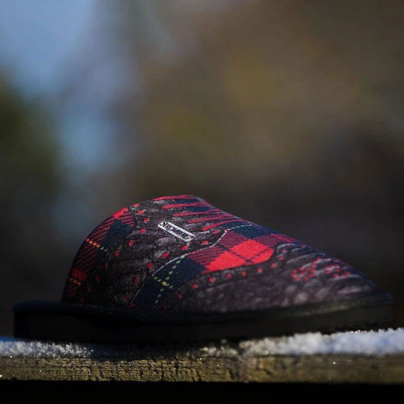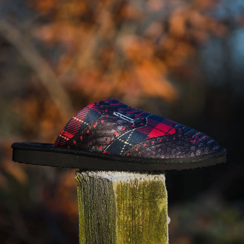 Perfect for the enthusiastic golfer with a tartan golf shoe print on the outside. Constructed with a plush footbed and interior lining to keep your feet nice, warm, and comfortable on those cold evenings at home. The slippers have soft EVA midsole and a textured outsole grip surface to give you maximum traction as you walk along the inside of your residence.