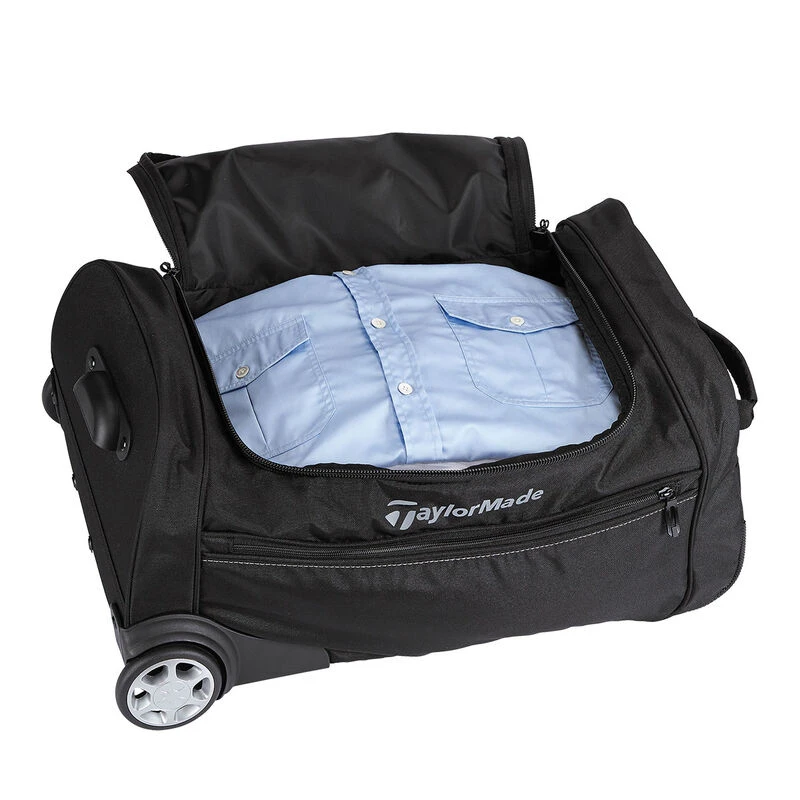 This durable travel companion offers a better way to transport your golfing essentials. The bag has a large u-shaped main compartment for easy access and has an exterior pocket for last-minute storage items. The bag has a durable construction and base, with multiple lift handles which include a telescopic handle. This allows you to roll along with the assistance of smooth-rolling wheels for effortless mobility. The bag is highlighted with a Tour authentic TaylorMade logo.
