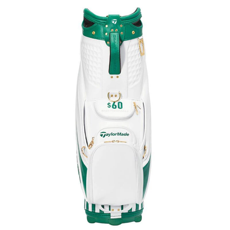 Get the professional look on the golf course with this fantastic Season Opening staff bag. Constructed with a brushed/micro-perforated synthetic leather finish and signature white and green first major of the year design.