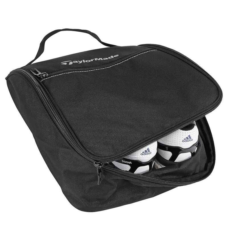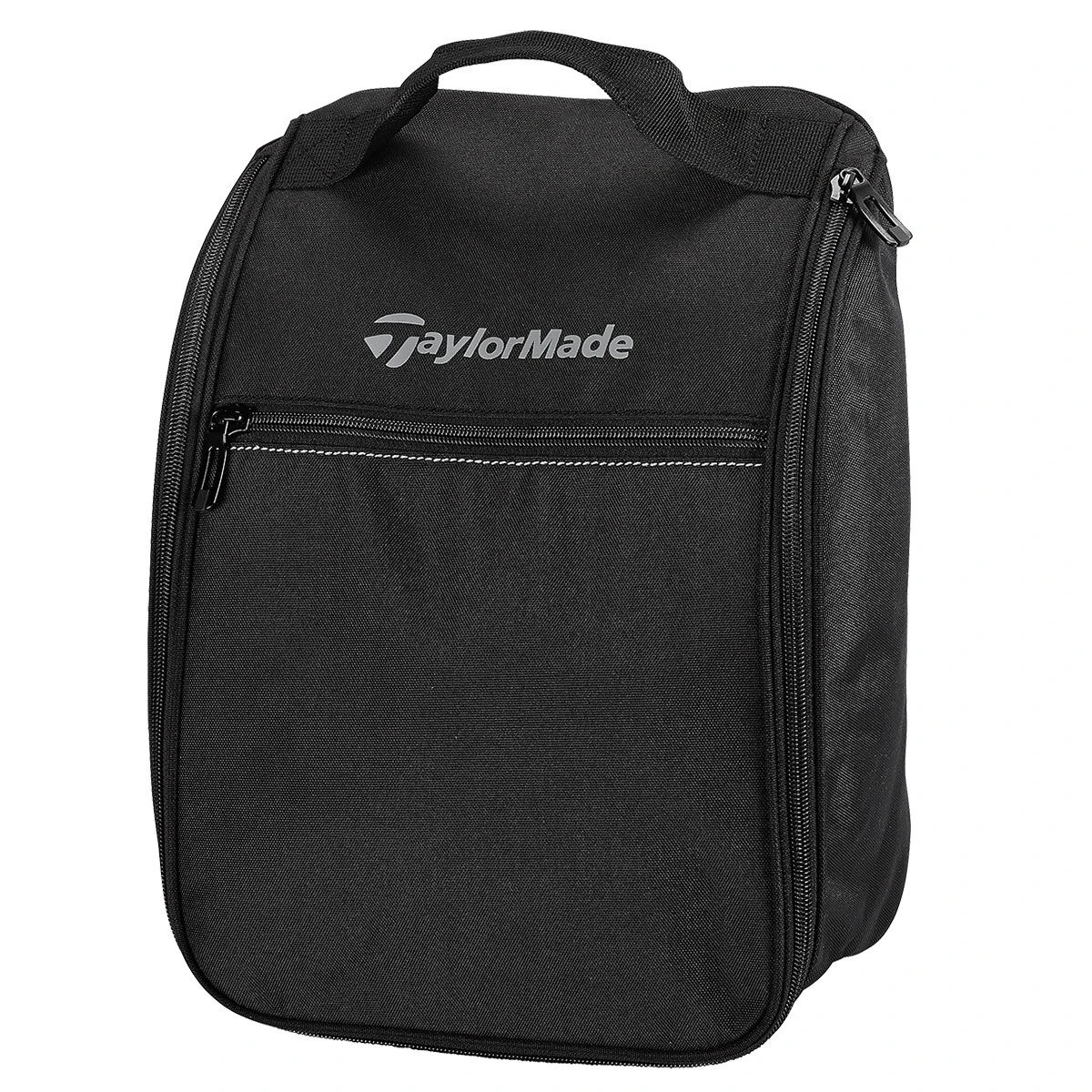 This premium golf shoe bag is perfect for storing your shoes. It has ventilated side ports for increased airflow to prevent the build of moisture or odour. The bag has an ergonomic carry strap and is highlighted with a TaylorMade high-density logo, plus has a custom logo ready front panel for personalisation.