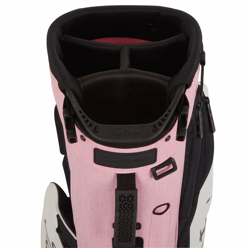 This special edition Pink Out golf bag in a pink colourway is one of Titleist`s most popular. It has a lightweight design to increase your endurance, with a re-engineered leg system and base mechanism, for ultimate stability.