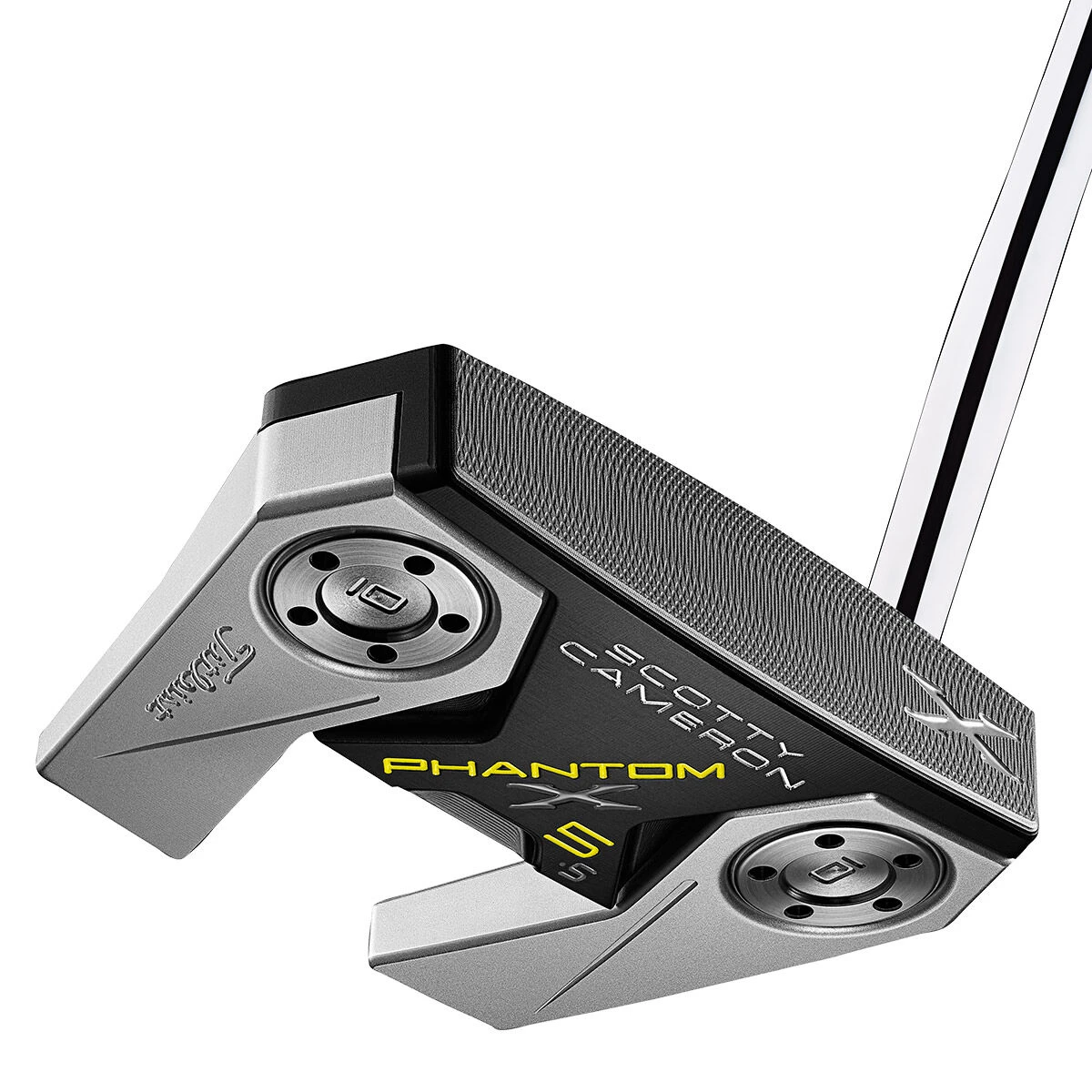The Titleist Scotty Cameron Phantom X putter range offers a major advancement in putting performance, to give all golfers will have unbelievable confidence on the greens. This mallet style putter range is exceptionally easy to align with new racing-inspired neon yellow dots, and a 6061 aircraft aluminium face in anodized black to provide a super soft feel for instant feedback.